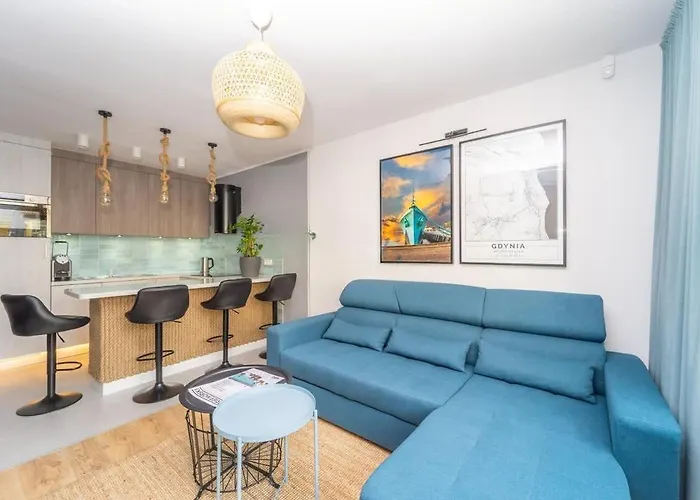 Bright And Blue 3City Apartment With Balcony In Gdynia By Noclegi Renters